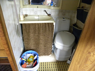 The new flushing loo and storage area on the righthand side.