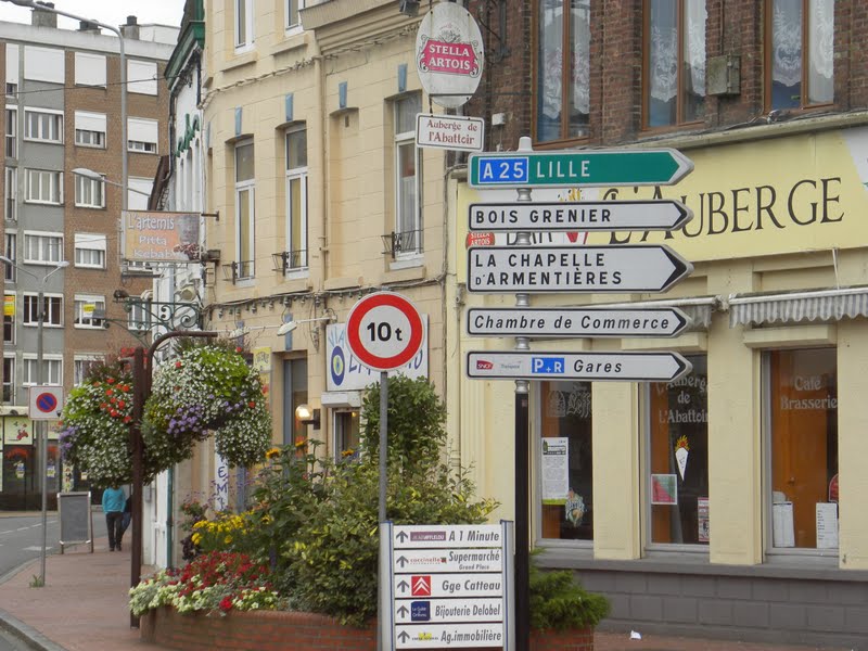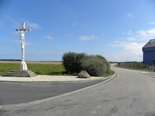 And then signs for the Fourth Australian Division Memorial who fought in Belgium and France from 1916 to 1918.. We followed the signs through the fields to the top of a hill about 1 km out of town called Les Chaudries and added our flag to the others. It was here the Australians captured German positions in what was known as the Hindenburg Outpost Line.