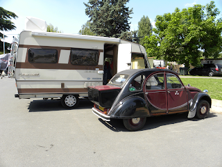 We were going to a caravan park called Maisons Lafitte one of the outer suburbs which was a 20min train ride to Paris . We pulled up at reception alongside this citroen packed full of camping gear. The big and little of Camping Cars.