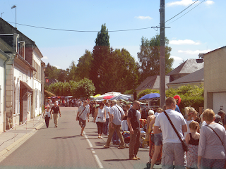 One of the delights of France is the unexpected. Sometimes too unexpected. This town was holding a Brocante in the main street with the stalls right on the road. We had to wait while this lady completed her purchase before we could get past.