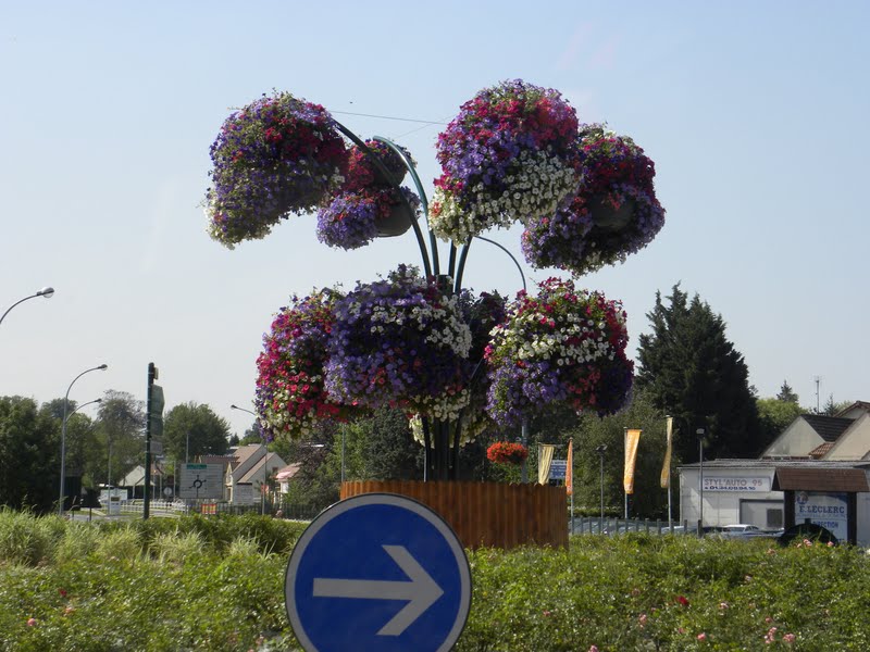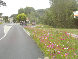We are taking D roads off of the motorways through small towns. You know you are in France when you see the crosses along the Pilgrim Routes and the lovely street flowers.