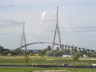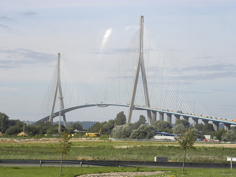 Now it is time to cross the Normandy bridge and drive north to Dunkirk and take the ferry to Dover .