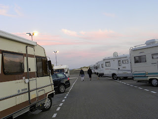 As you can see from this photo not all overnight motorhome spots are ideal. Here we all parked along the street on a hill.